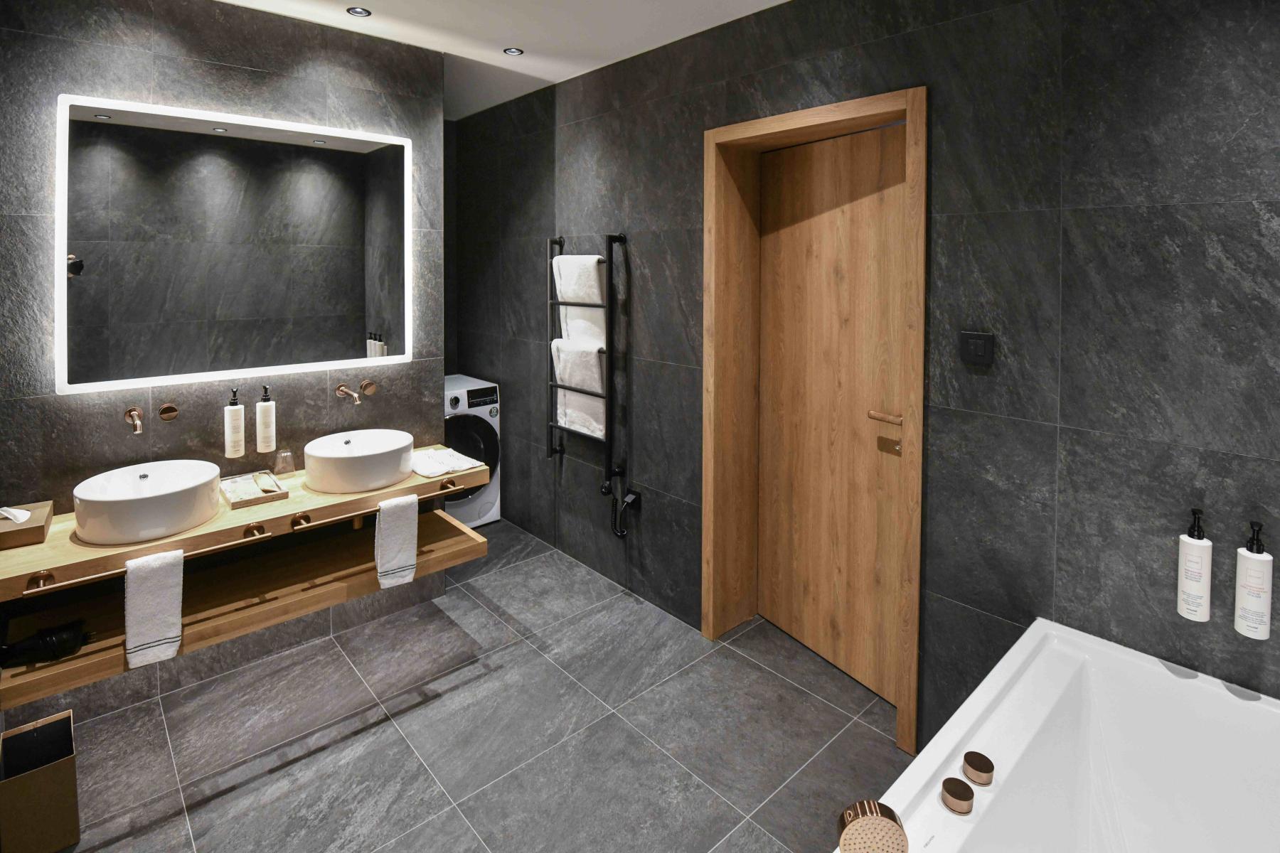 Vyberte si Swiss Signature dvojizbový apartmán ako svoj nový domov v Nízkych Tatrách – s kuchyňou, rozkladacím gaučom a dvoma kúpeľňami. Krb a švajčiarsky dizajn s drevenými prvkami navodzujú pocit pokoja, zatiaľ čo panoramatické výhľady na hory prinášajú čistú radosť.