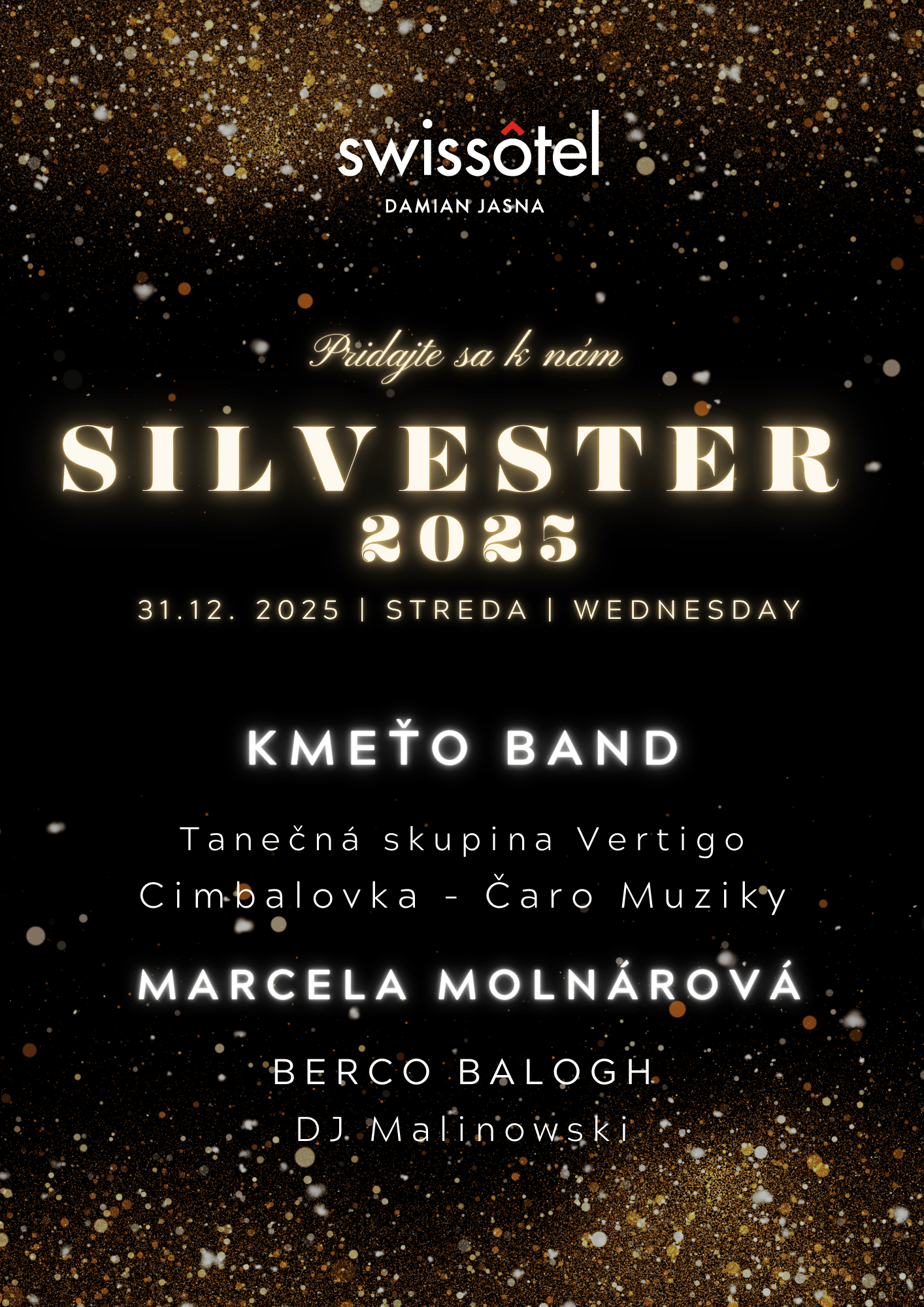 Swissôtel Damian Jasna vás pozýva na elegantný silvestrovský večer plný hudby, gastronómie a nezabudnuteľnej atmosféry.